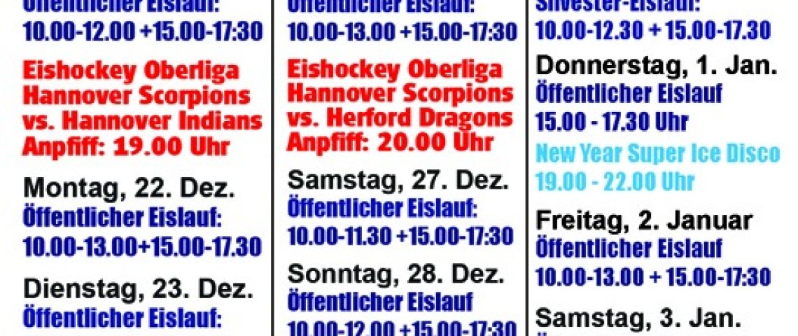 Bei Interesse an Eiszeiten, bitte einfach melden bei: ih@sportundfreizeit.net oder unter 05130 9594-0